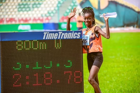 Hephzibah Okon, 13, stunned spectators with a commanding run to win gold in the women’s 800m at the ongoing 2nd Niger Delta Games in Benin, Edo state.