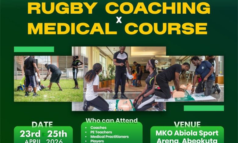 The Nigeria Rugby Football Federation (NRFF), in partnership with the Ogun State Government, has announced a three-day rugby coaching and medical course scheduled to take place from April 23 to 25, 2026, at the MKO Abiola Sports Arena, Abeokuta.